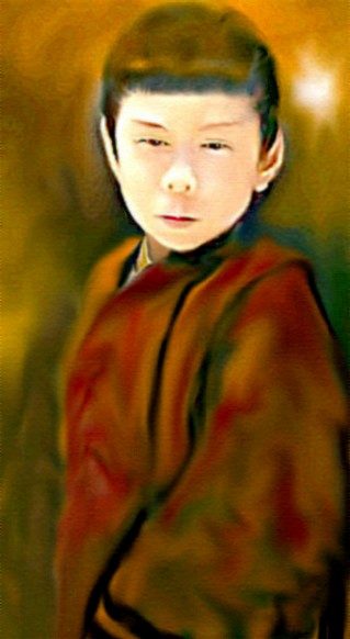 Der'aval rose and came to stand behind Spock, hands laid lightly upon his shoulders, as if in reassurance or blessing. She faced her companions, those same dark eyes sweeping without haste over each one in turn. "Unlike our sibling, Lar'bahadur, I dost look at this child, and see only a courageous spirit. In truth, his control is flawed; he dost not wholly embrace the Vulcan Way. His countenance betrays each thought, each notion. He trembles beneath my hands. Yet, even in terror, he dost remain steadfast. What matter who his people dost be, when the blood runs constant and true? He is young; he hast much yet to learn. Where better should he find guidance than among our kind? He must hast his chance. I would allow the bonding."