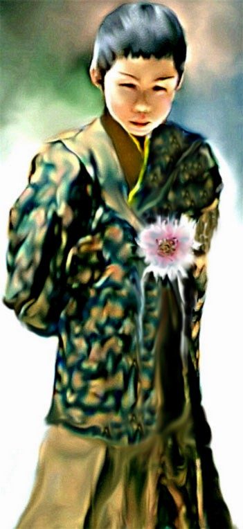 He knelt, and bowed his head before T'phra and as tradition required, she placed her fingertips lightly upon his katra points sharp eyes narrowing a little as she dexterously touched his thoughts. Her usual remote, matriarchal manner appeared to soften just a little - or so it seemed to Spock - as she pronounced, "Thee goes forth a boy but will return a man. Live long and prosper, Spock son of Sarek, son of Skon."